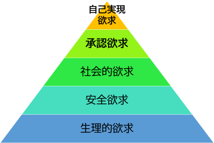 例として、アメリカ合衆国、ニューヨーク州に生まれた心理学者で、人間心理学の生みの親と言われている「マズローの欲求5段階説」をベースに考えてみました。